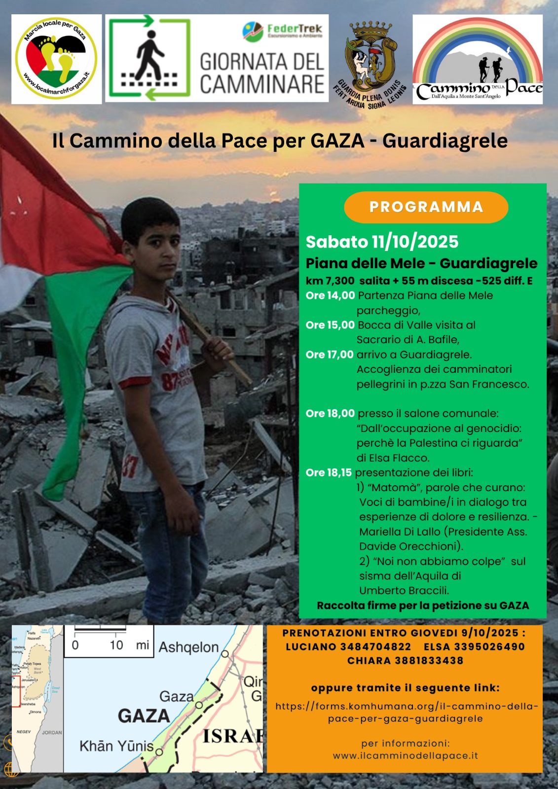 Per adesioni: https://forms.komhumana.org/il-cammino-della-pace-per-gaza-guardiagrele